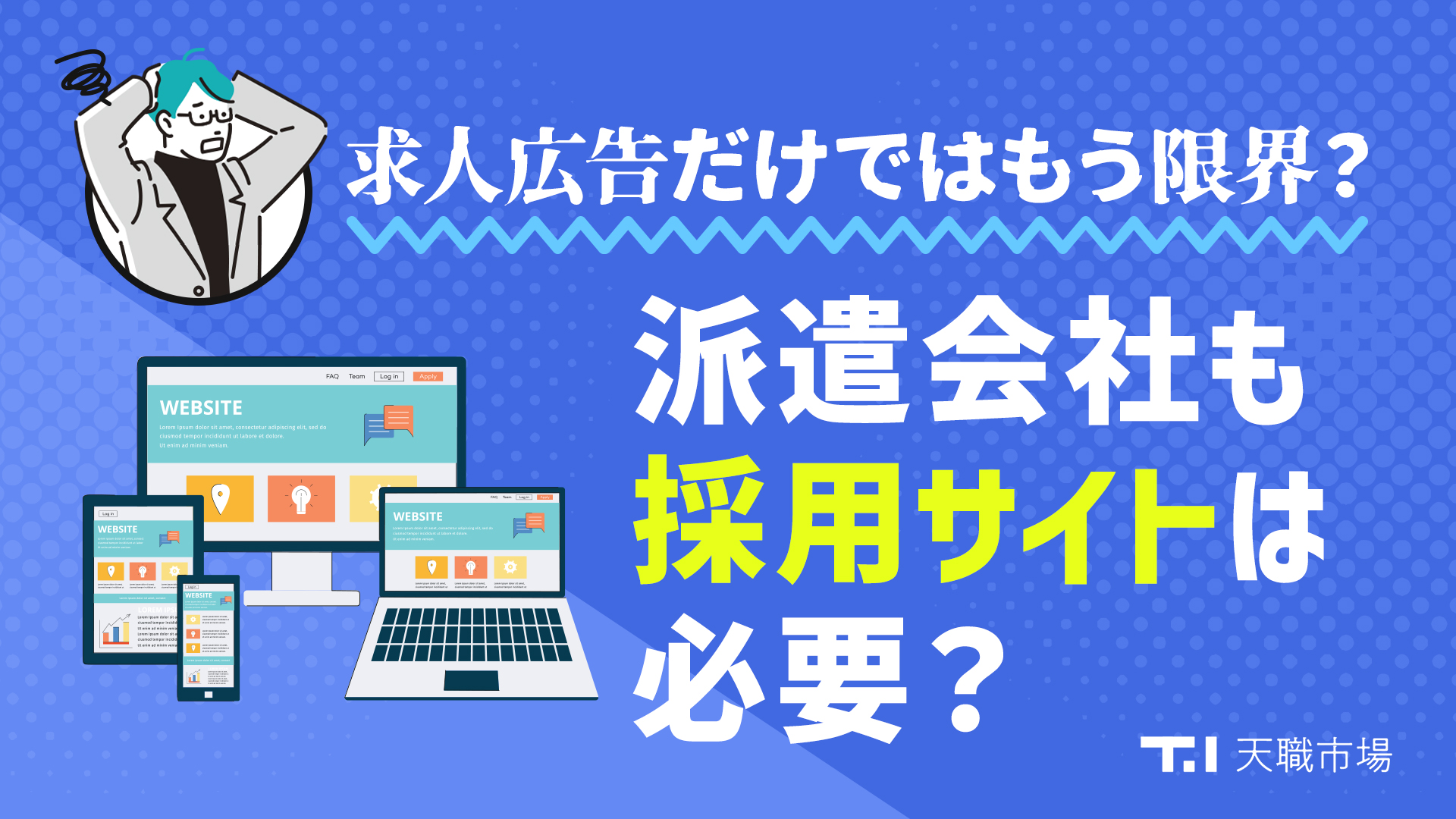 人材採用は、企業経営において永遠の問題のひとつと言っても過言ではありません。経営を左右する採用の問題に対して、私たち天職市場は採用・求人支援のプロフェッショナルとして包括的にとらえ、問題解決に尽力いたします。